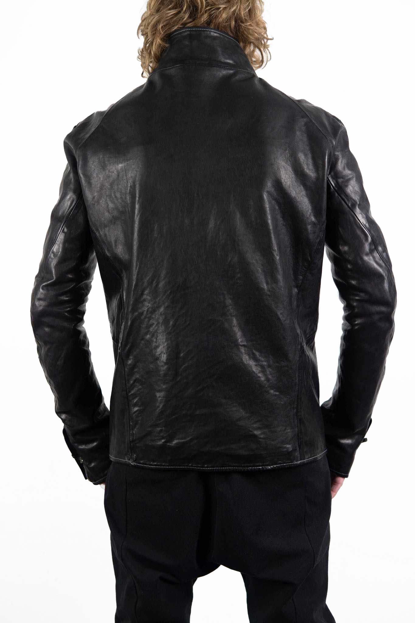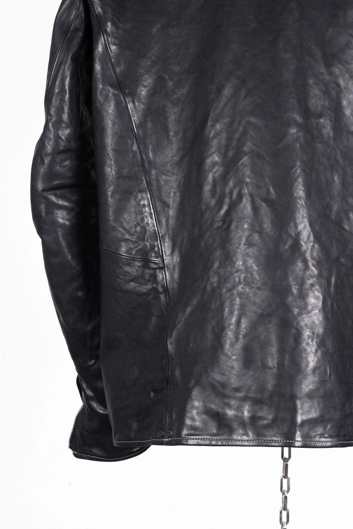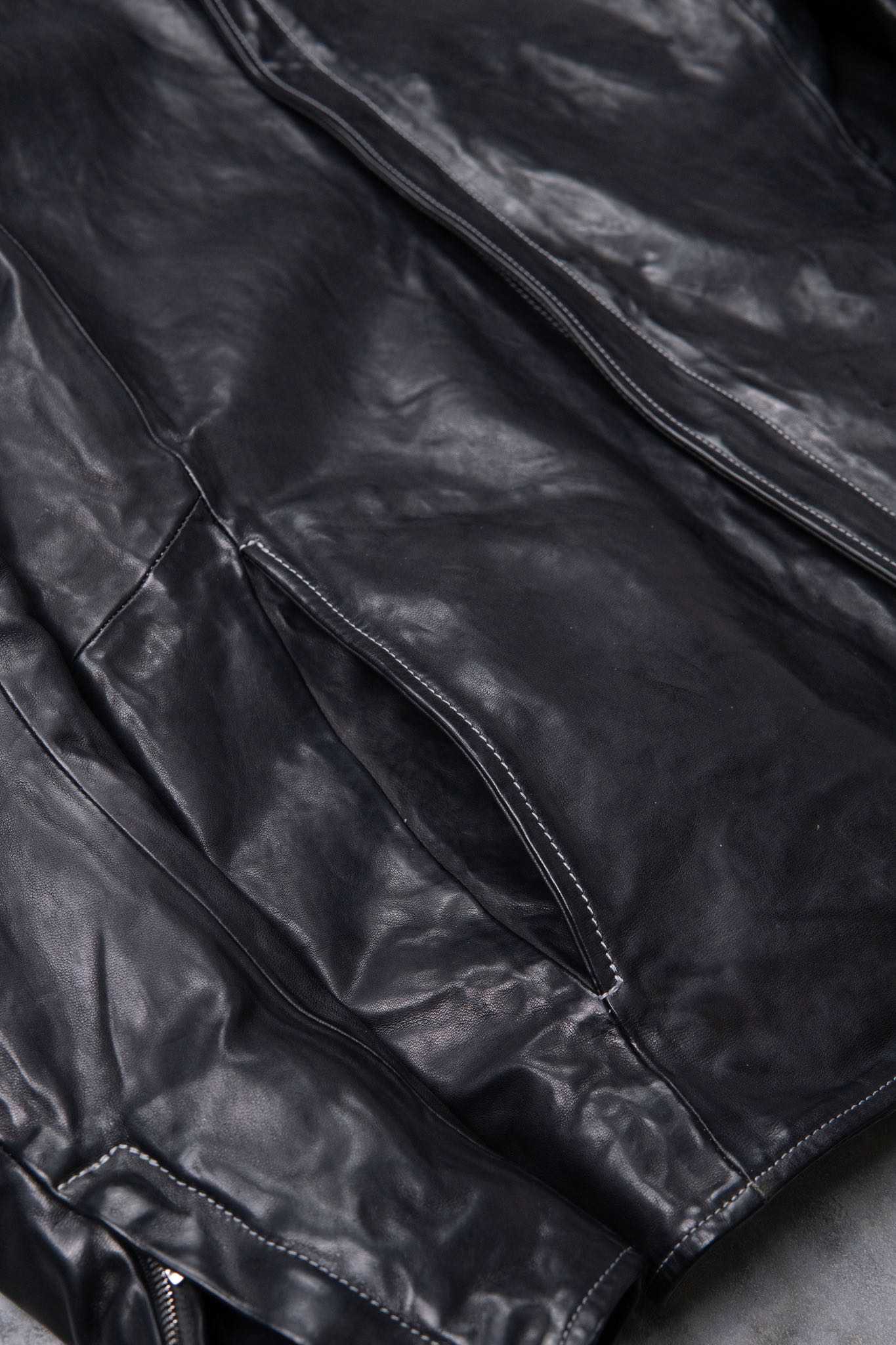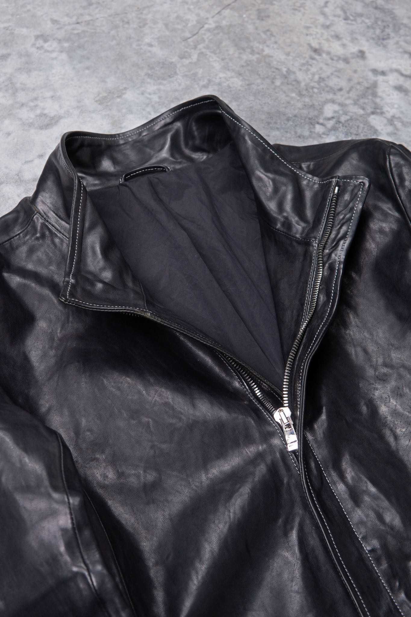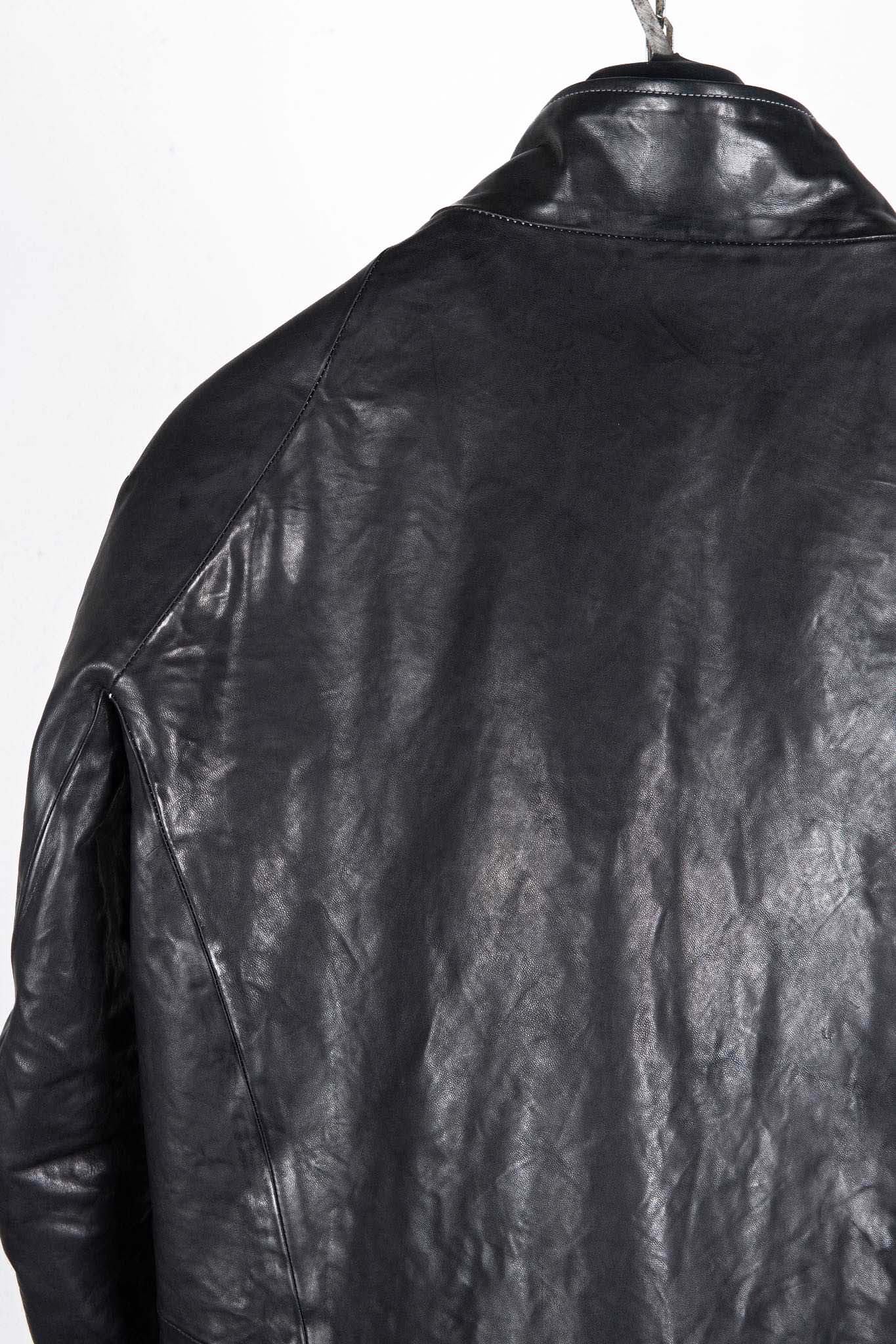 デザインは、背中に一枚革を贅沢に用い、脇にはマチを設けて可動域を確保。袖には緻密なカーブをつけ、裾を広めに設定することで、着用者の腕をより細く、美しく見せるシルエットが完成しました。