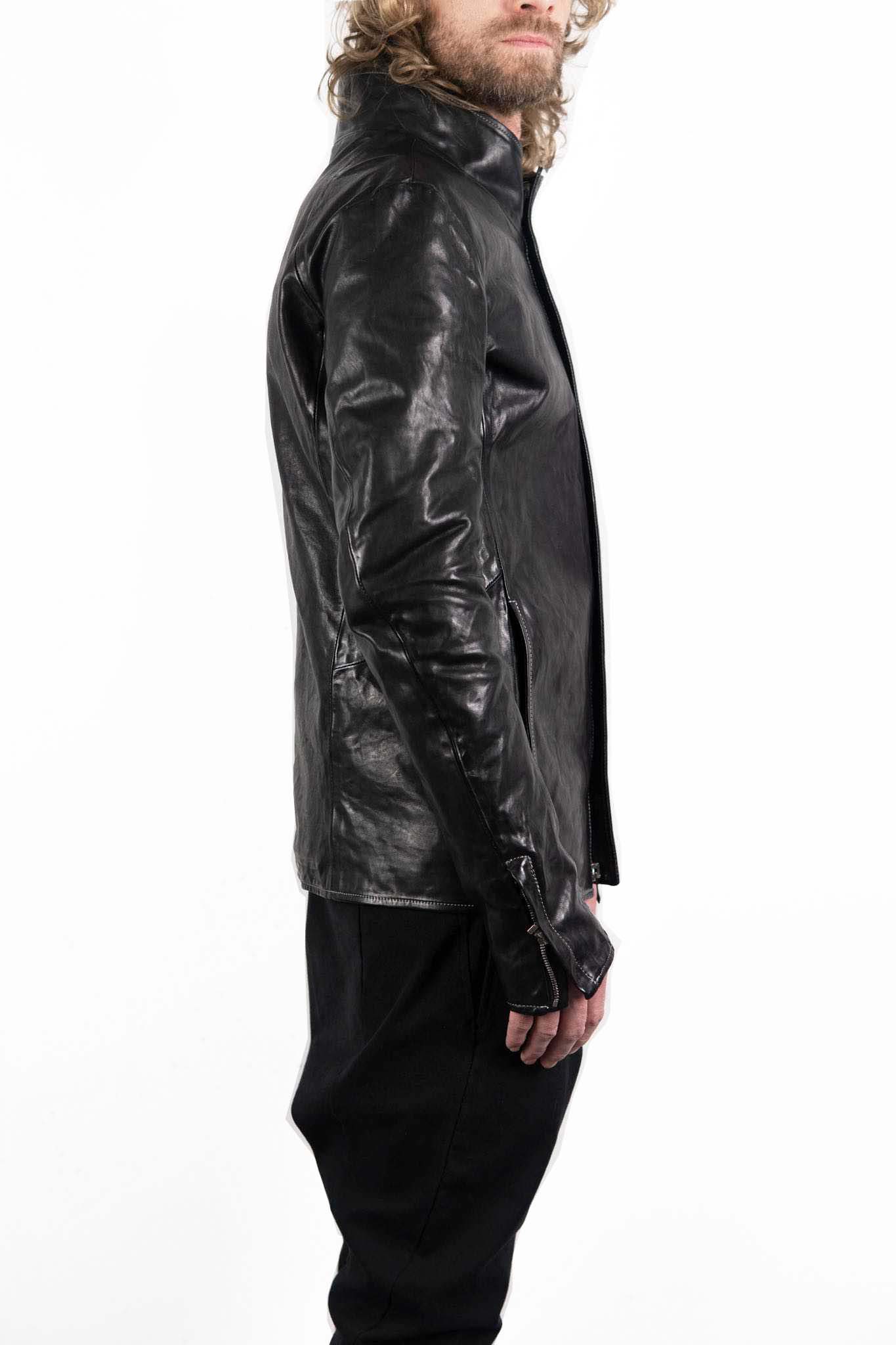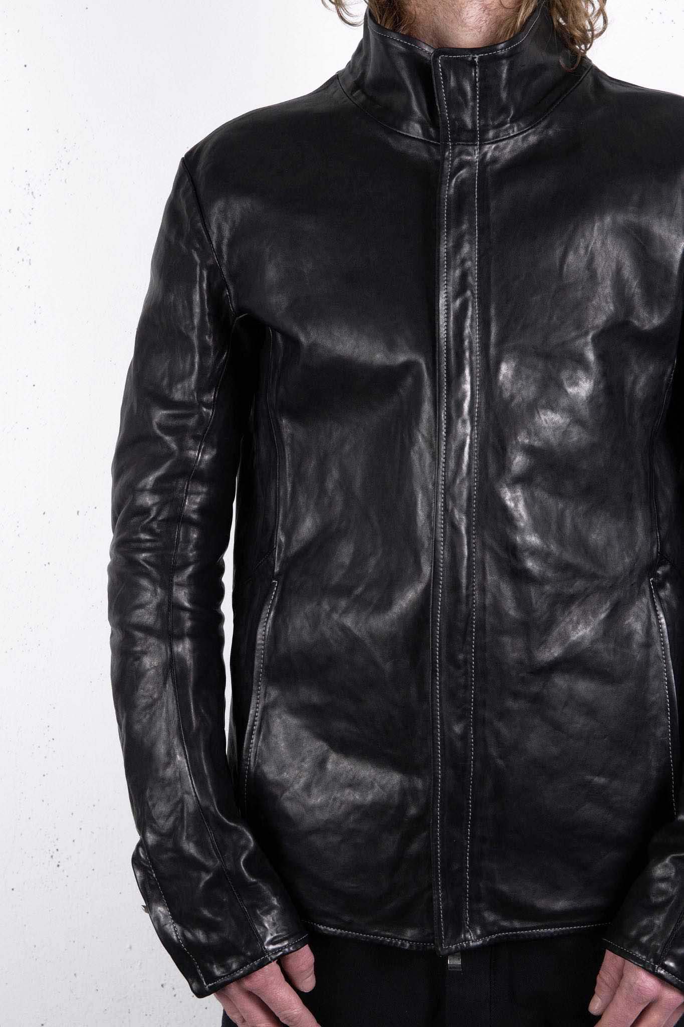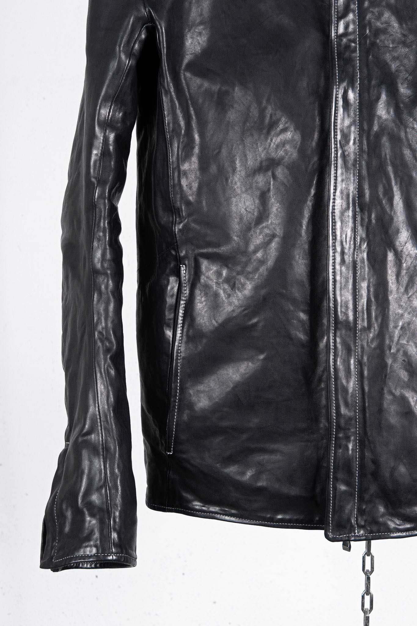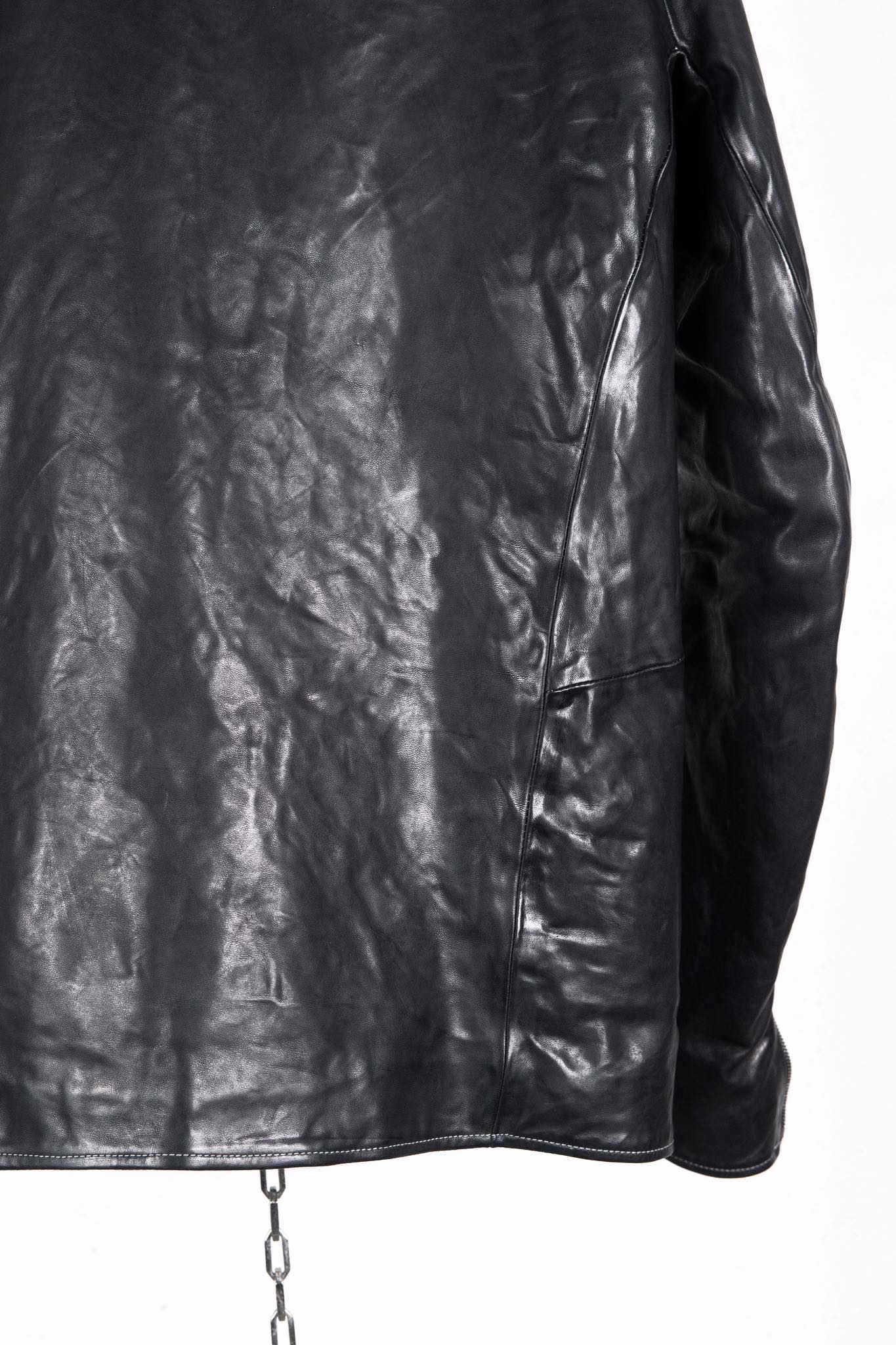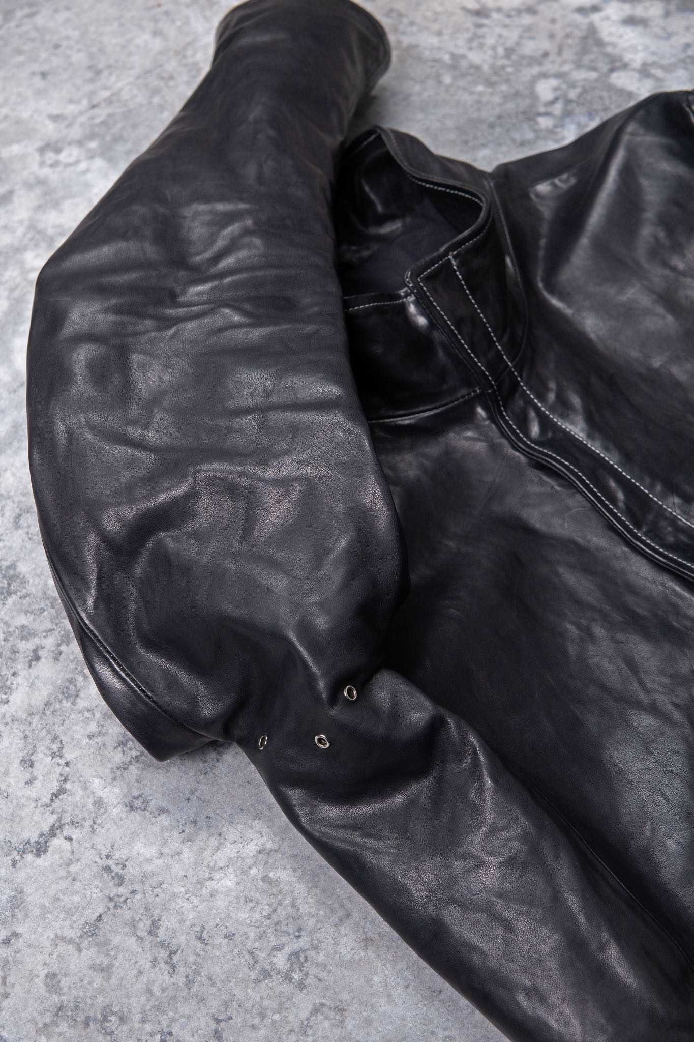 デザインは、背中に一枚革を贅沢に用い、脇にはマチを設けて可動域を確保。袖には緻密なカーブをつけ、裾を広めに設定することで、着用者の腕をより細く、美しく見せるシルエットが完成しました。