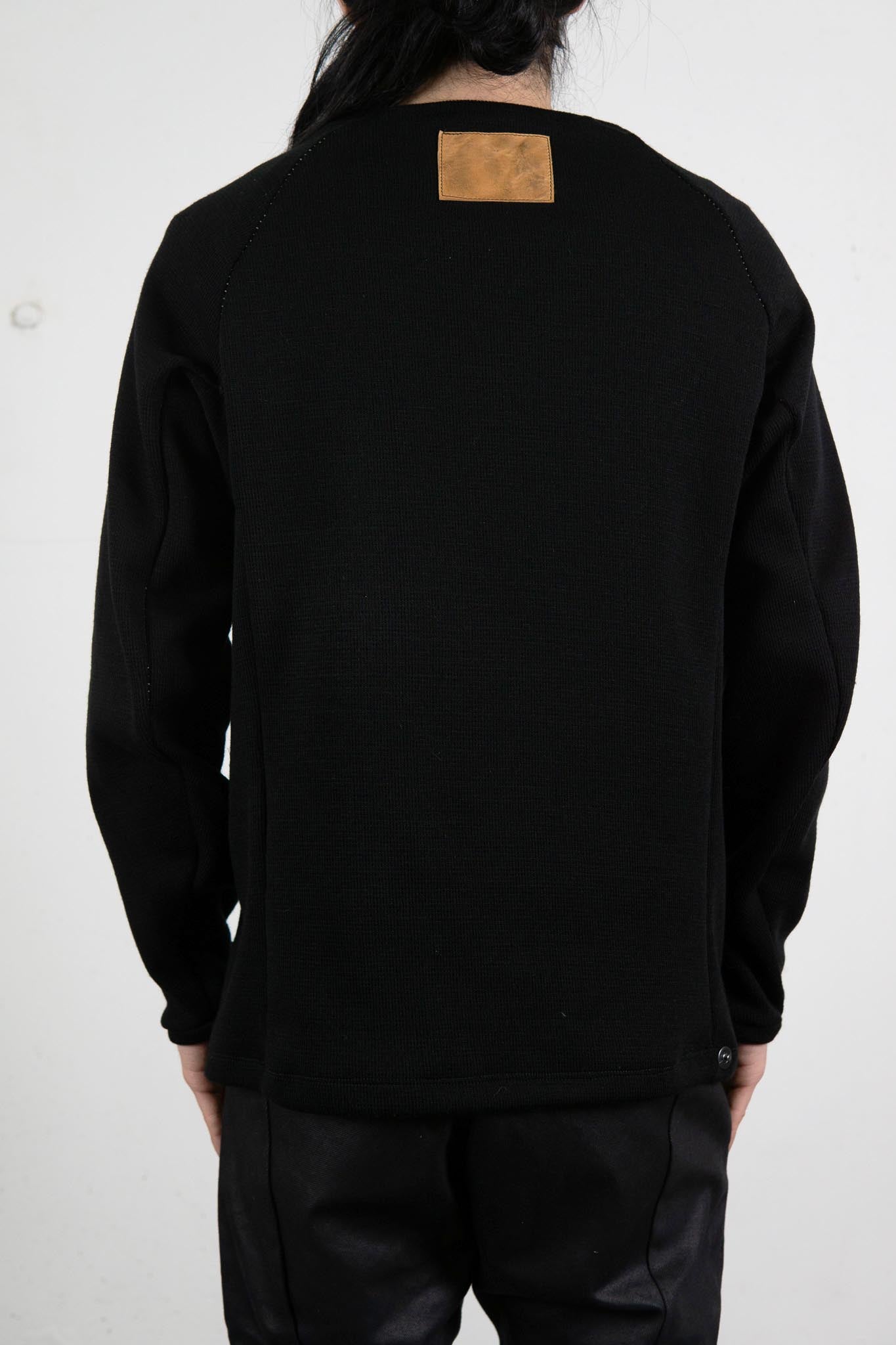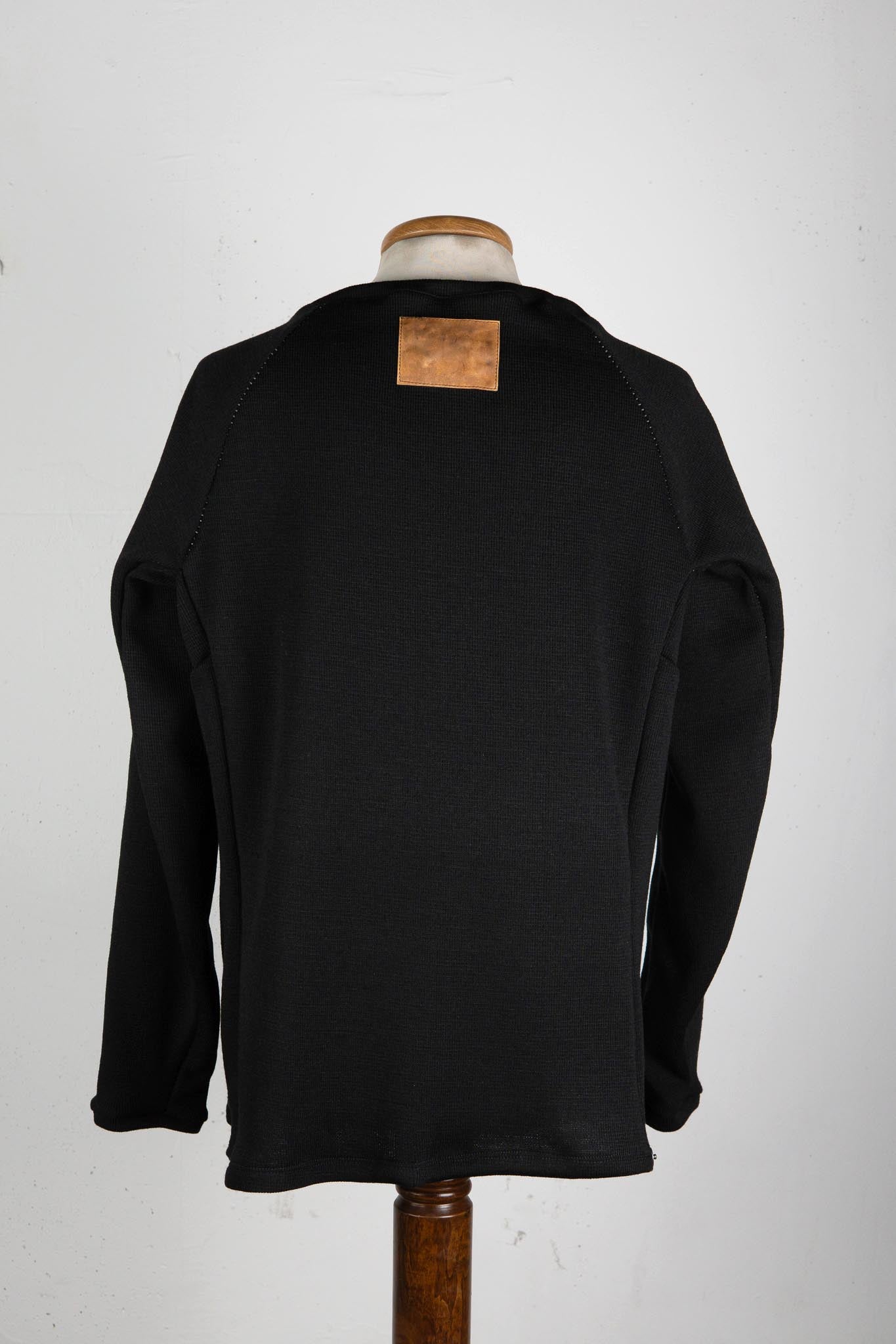 背面にはブランドを象徴するオーバーロックとレザーパッチを配置。