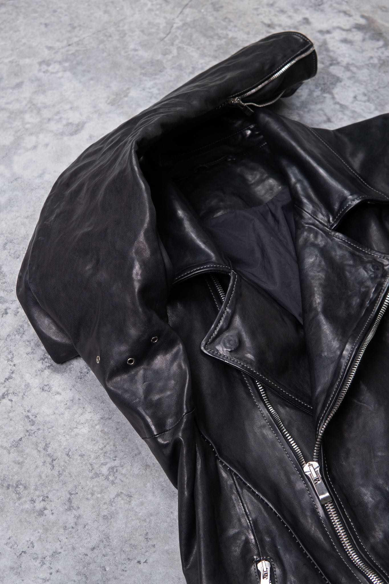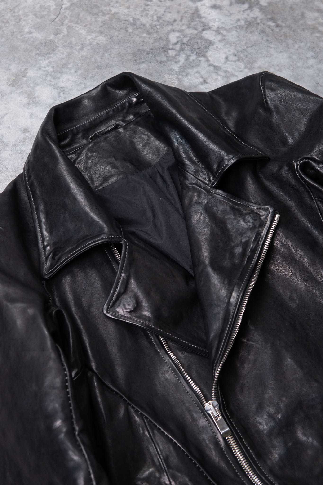 植物タンニンで鞣された0.7~0.8mm厚のホースレザーを使用し、製品染めに適したオイル仕上げの下地で特別な風合いを実現しています。