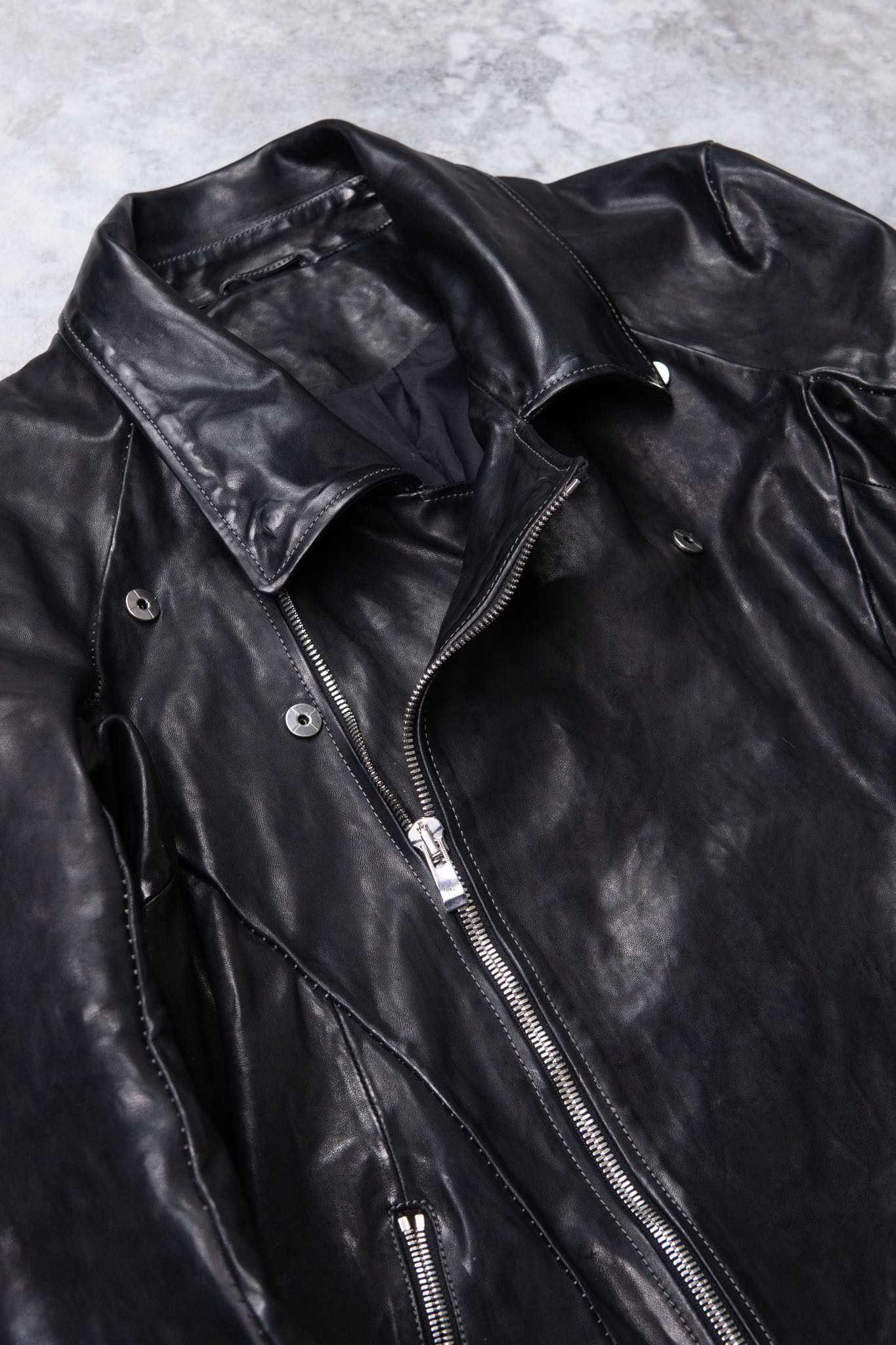 HORSE LEATHER DOUBLE BREAST MOTO DARTS SHOULDER BLOUSON LINED JB-3