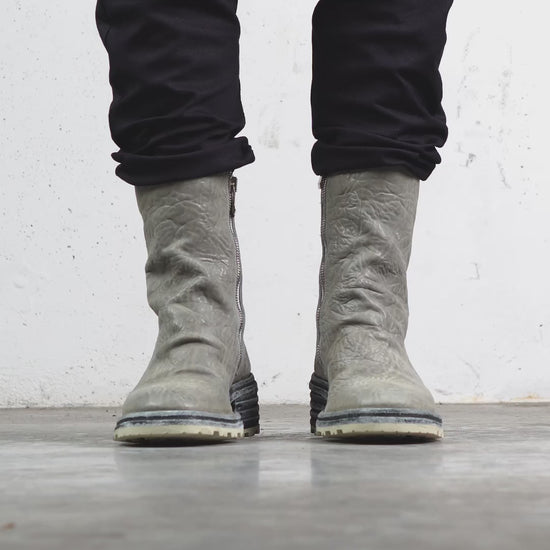 HORSE WHTE RG LEATHER SZ-1L SIDE ZIP LONG LINED #2LEATHER SOLES+VIBRAM PIECE DYED